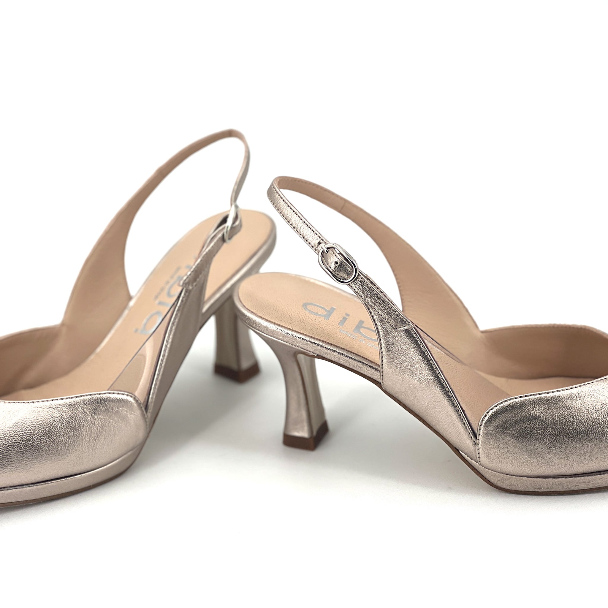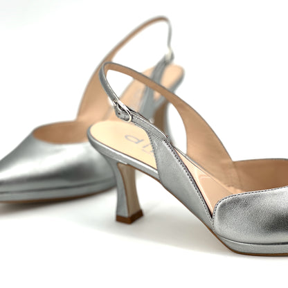 Zapato de salón con piel grabada, combinada con vinilos en los laterales. Realizados totalmente en piel. Pequeña plataforma interior y exterior que resta altura a su tacón. Su horma con extra de ancho le proporciona un confort insuperable. ¡Crea tus looks más especiales para tus próximos eventos!